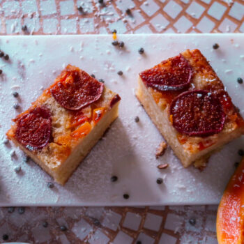 Fig and papaya upside-down cakes: muffin-tin bake, olive oil + Greek yoghurt, glossy fruit tops, tender crumb. A quick, no-butter dessert.