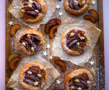 Flaky puff pastry, thick vanilla custard and cinnamon-dusted plums that soften just enough in the oven. Best with a cup of tea and a quiet moment to yourself.