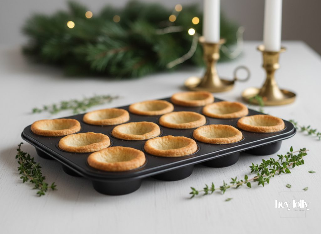 For New Year’s Eve, that balance matters. You want something with enough flavour to hold its own. These tartlets do exactly that. Add a small scattering of thyme and you get canapes that feel more “party table” and less “snack plate”.