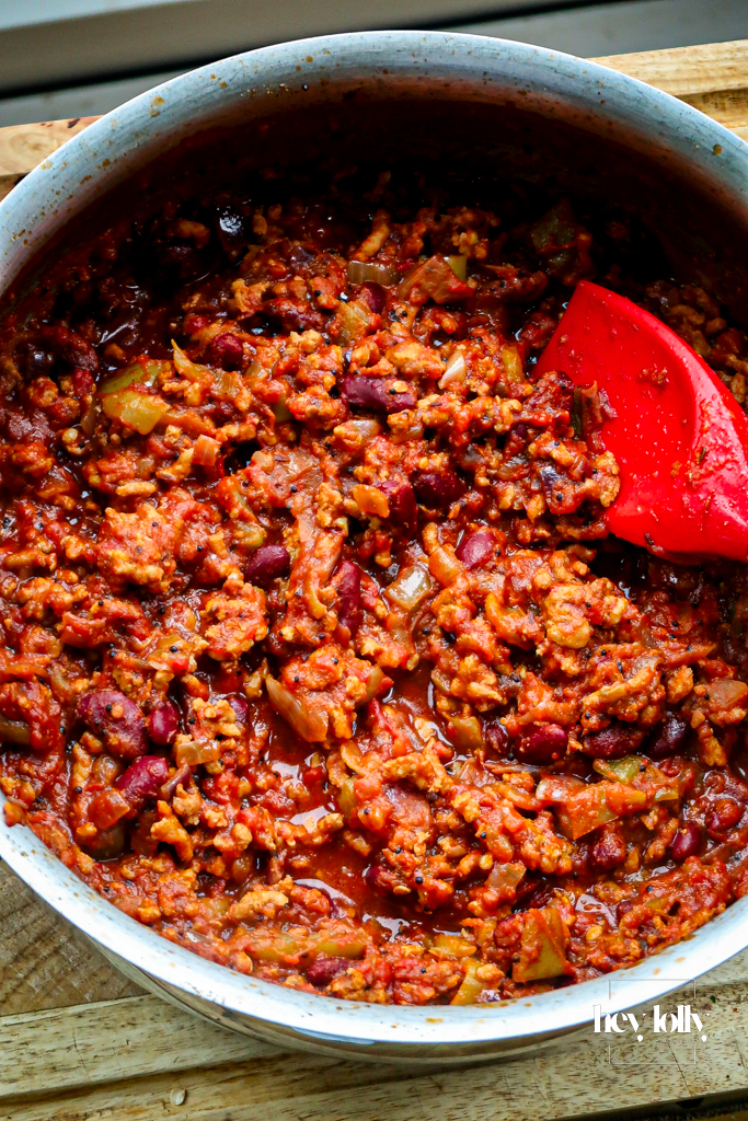 The kidney beans might seem unexpected at first. However, they bring little pockets of creamy bite, almost like built-in comfort. They also stretch the pan, quietly turning a packet of chicken mince into something that easily feeds four, and very often six, especially if you’re serving it with rice or bread.