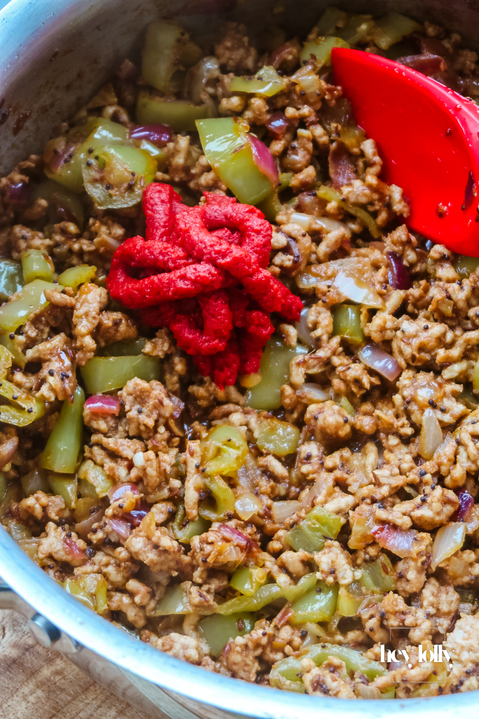 - Stir for about 1 minute so the spices bloom in the oil. If the pan looks dry, add a tiny splash of water so nothing doesn’t catch. Brown the chicken mince