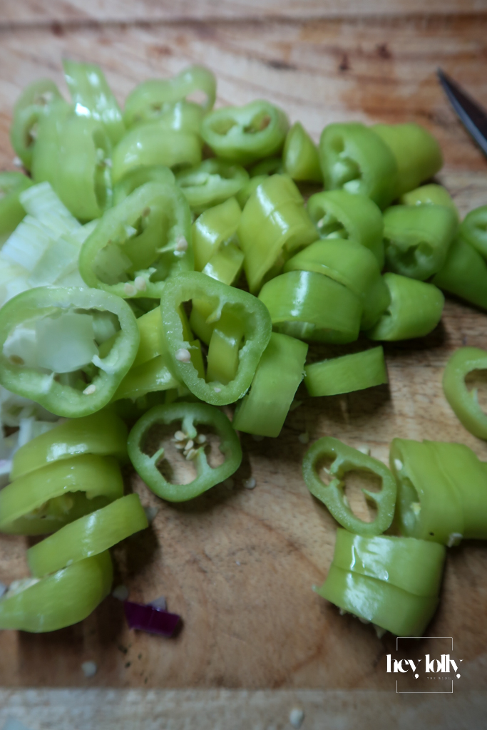 - Add the sliced Carli or green pepper and cook for another 3–4 minutes until starting to soften. Toast the ground spices