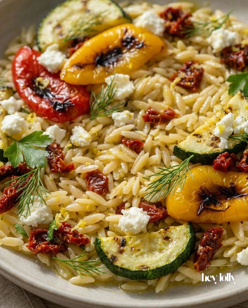 Orzo gets mistaken for filler. I don’t agree. It absorbs flavour without becoming claggy, especially when dressed warm. That’s why the sun-dried tomatoes go in early. They loosen. Their oil coats the grains. Everything else follows.