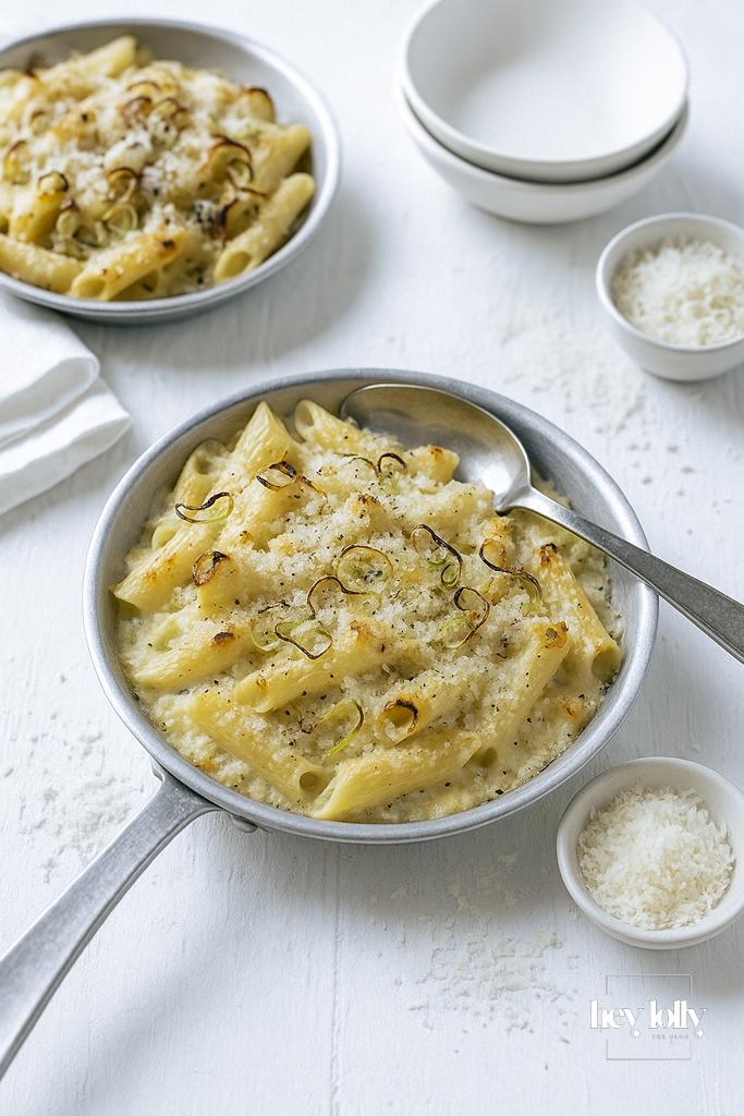There are evenings when only a dish laden with carbs dish will do. You carry it to the table and the day exhales. My leek and gruyère pasta bake is exactly that. Leeks soften into sweetness with almost no fuss. Gruyère brings nutty perfume. Parmesan adds savoury bite and a drift of snow on top.