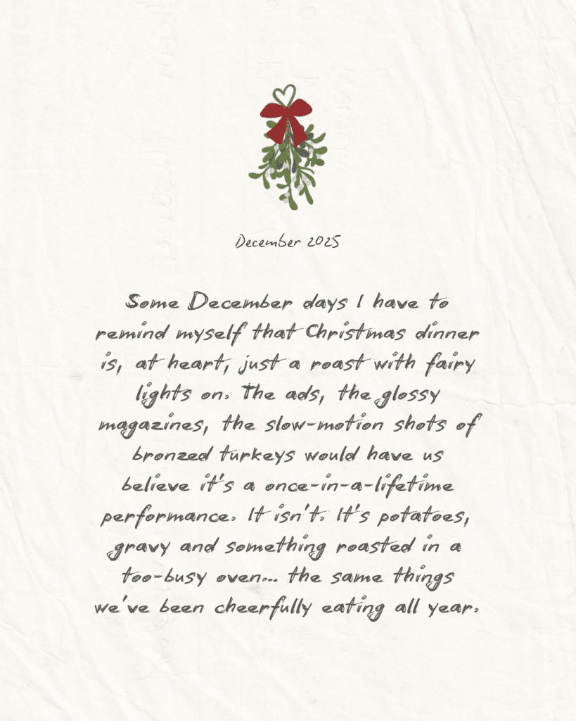 And then there are the pigs in blankets. I will never give those up. They are the thing I happily over-cater, purely so there are a few left later for cold picking. There is nothing quite like sneaking one from the fridge in the quiet of the evening, when the day has finally exhaled.