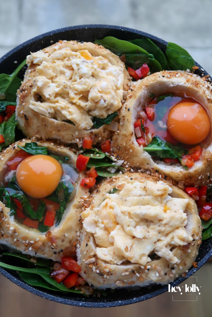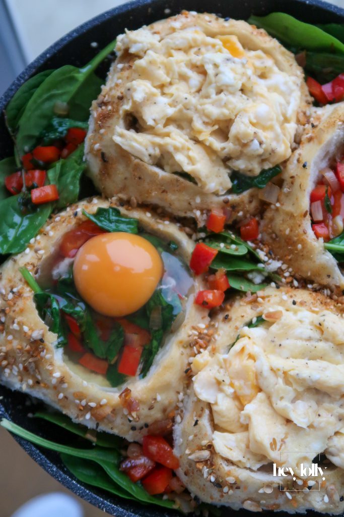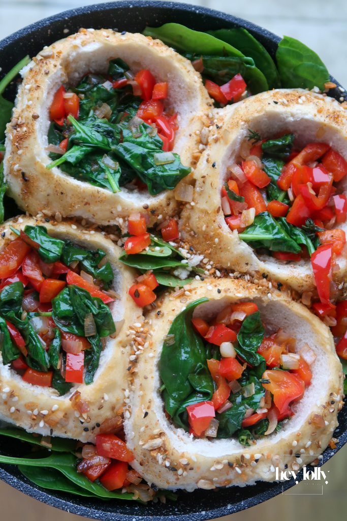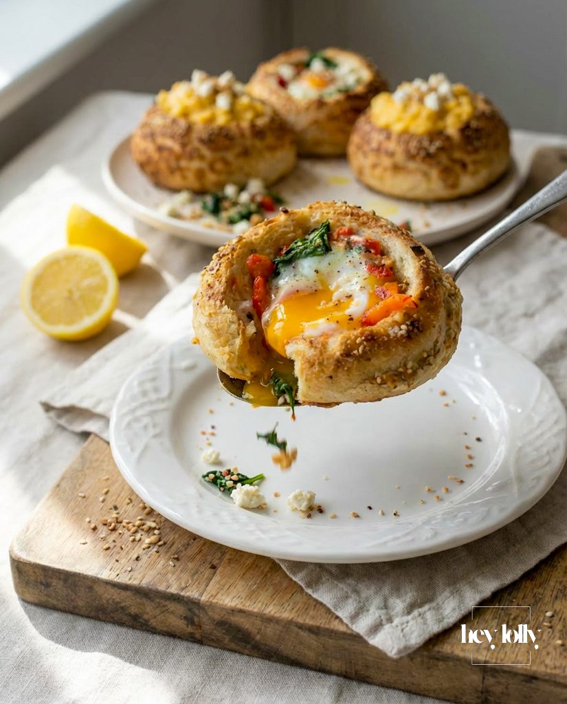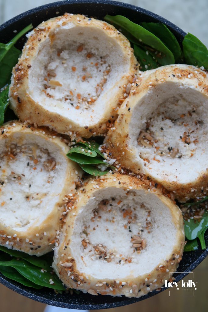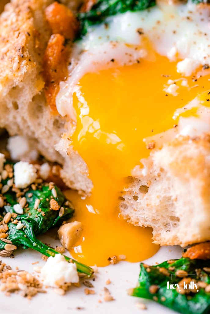 Hey Lolly's Kitchen Notes: Dukkah adds crunch, warmth and depth — sesame and nuts work beautifully with egg and feta. If your rolls are very large, add 1 tbsp cream or yoghurt to the spinach for extra richness. Frozen spinach works well here, but squeeze it thoroughly to avoid soggy buns. These are best served immediately while the buns are crisp and the eggs are warm. A sharp green salad or sliced tomatoes make an easy side.
