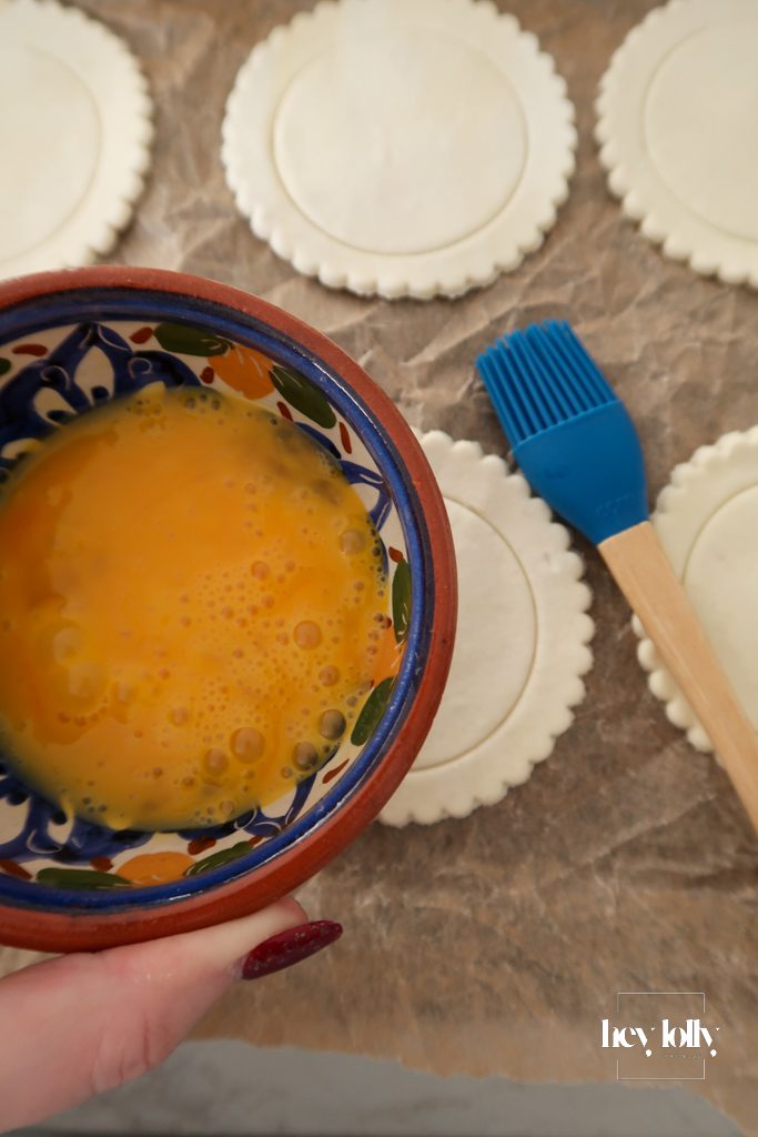 • Cut the puff pastry into 6–8 rounds using a cutter.