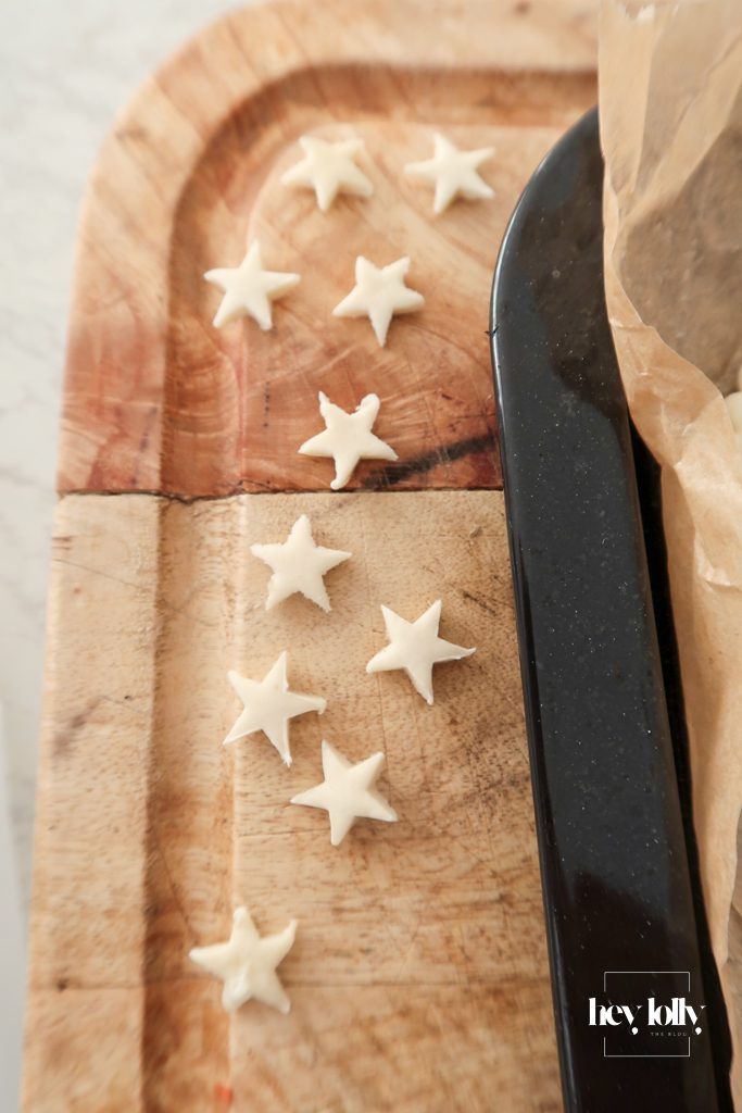 • Lightly dock the centre of each round with a fork, leaving a 1–1.5cm border untouched.