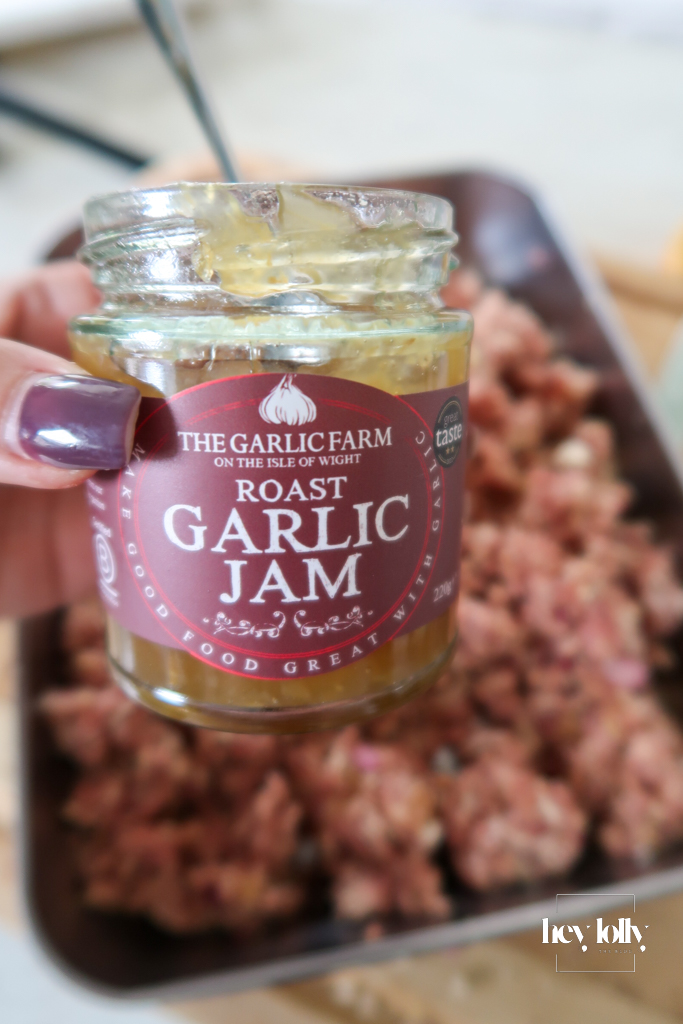 They love company. Serve with my Pigs in Blankets Yorkshire puddings with the works. Or skewer them with a roast potato cube and a charred sprout for a party board that reads “British, but fun.” They take to blue cheese very well, too. A tiny nugget hidden with the garlic jam gives you a smoky, tangy bloom that feels wicked with red wine.