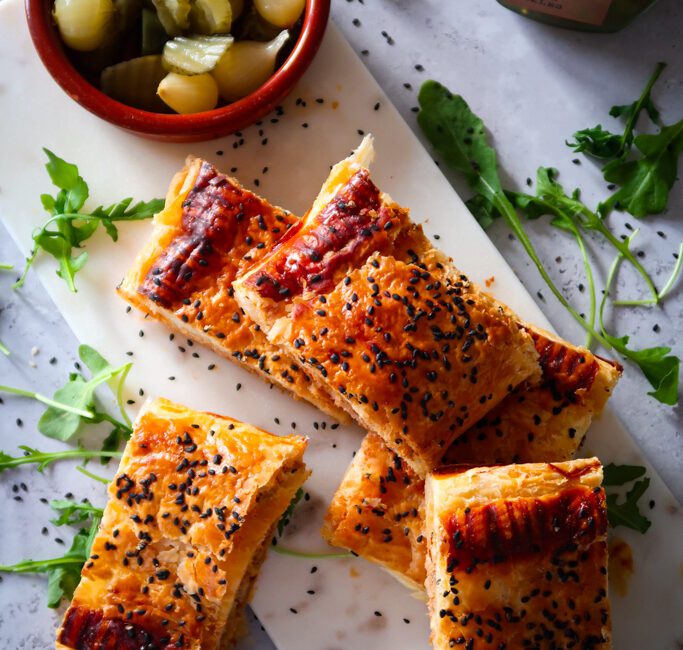 I made these sun-dried tomato chutney and cheddar sausage rolls for a gathering last month and they literally vanished before I’d even put the kettle on! Golden puff pastry wrapped around seasoned sausage meat, with a good dollop of Driver’s sun-dried tomato chutney and sharp mature Cheddar for good measure. I guarantee, these sausage rolls make people ask which fancy deli you raided; and it’s so much nicer to say, “my oven!”
