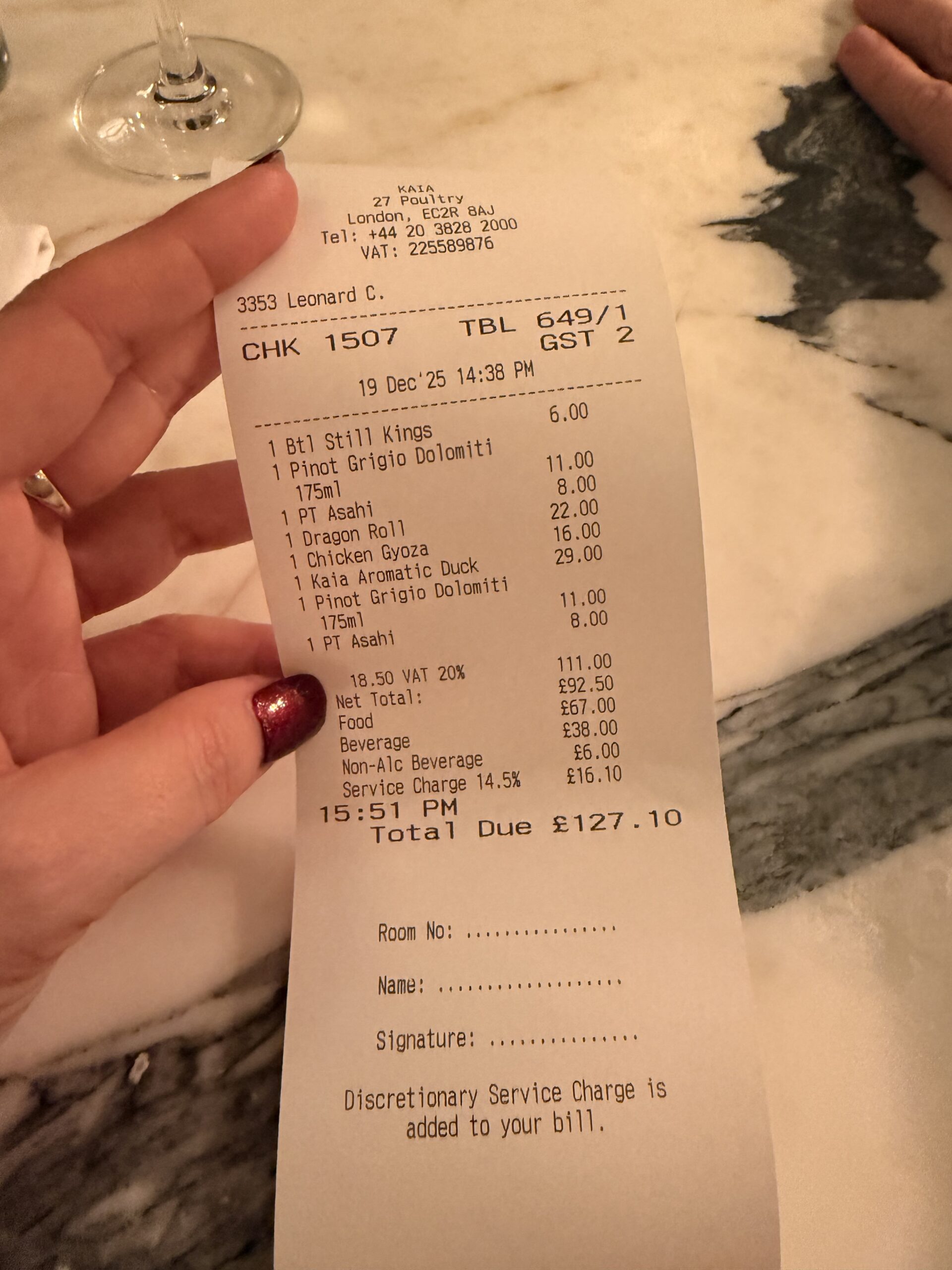 I arrived on a December afternoon, coats still on, the building dressed for Christmas. Trees, lights, warmth. The decoration felt classy and considered rather than merely applied. The room hummed with life, music drifting up from the bar, glasses clinking, people lingering, yet it never felt frantic. Busy, yes. But perfectly settled.