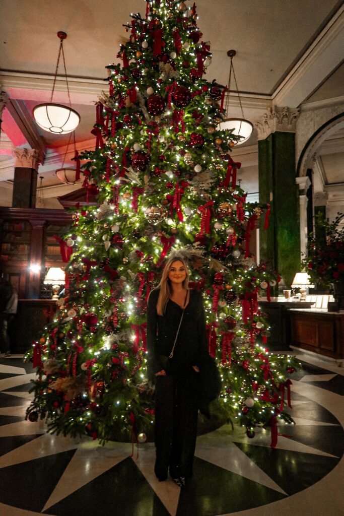 In December, that confidence extends to the festive dressing everywhere you look. Decorations are generous but considered, sitting easily within the building’s character rather than competing with it. At the centre, near reception, a tall Christmas tree rises through the space. It draws people in almost without asking, heads tilt back, conversations pause, phones come out briefly, then are put away again. The effect is celebratory but restrained, adding warmth and a sense of occasion without overwhelming what is already there.