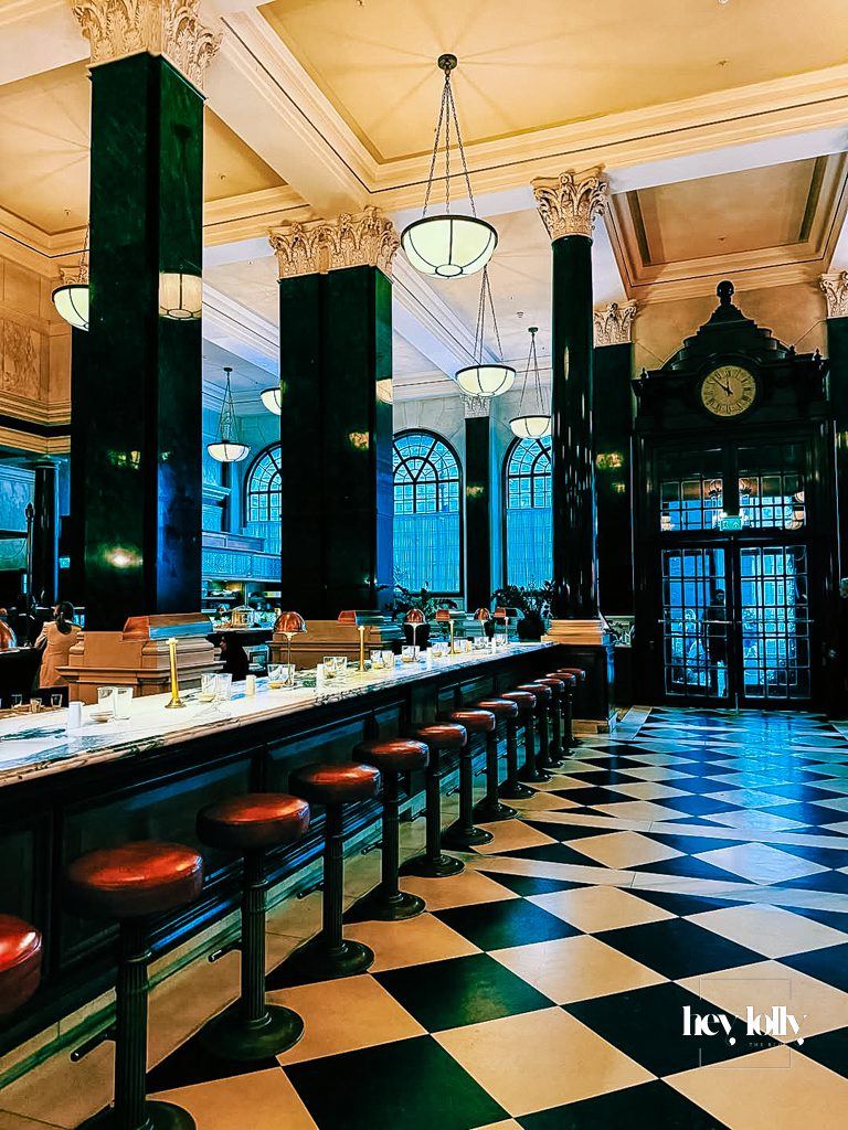 There is a particular confidence to The Ned’s atmosphere. It knows what it is and doesn’t feel the need to explain itself. The design leans heavily into 1920s New York glamour, brass, marble, deep colours and generous proportions, yet it avoids feeling pastiche.